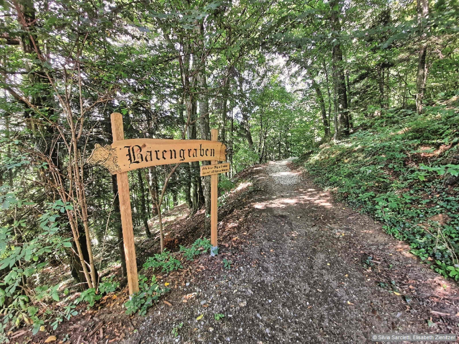 Wir starten am Hauptplatz von Friedberg, 600 m, und folgen den Erlebnisberg-Friedberg-Tafeln in eine schmale Gasse. Links weiter, beim Stadtbeisel vorbei, kommen wir zu einem kleinen Platz mit einem Brunnen. Nun geht es leicht bergab und wir erreichen die Zufahrtsstraße ins Zentrum. Am Eck sehen wir zahlreiche grüne Hinweisschilder und auch gelbe Wegweiser, denen wir nun in Richtung Bärengraben (Weg Nr. 927) folgen. Ein kurzes Stück entlang der Straße leicht bergauf und dann direkt an der Rückseite eines ehemaligen Hotels (jetzt Caritas) vorbei. Gleich hinter dem Haus beginnt der attraktive Gehweg durch den Bärengraben, dem wir bachaufwärts bis zum Rastplatz Bärenwiese, 695 m, folgen.
