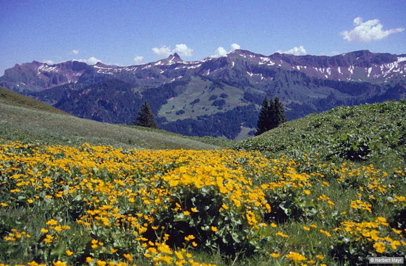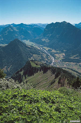 Zwischen der Dornbirner Ach und dem bei Mellau zur Bregenzer Ach hin mündenden Mellental erstreckt sich der sogenannte First. Wohl geformter Eckposten dieser langen Gipfelkette ist die fast allseits steil abfallende Hangspitze. Durchbeißen heißt es für denjenigen, der diese grüne Bergdame begehrt. Der zur ausrangierten Hangalpe kletternde Alpsteig, wo nur noch ein Hauch alter Älplerzeit weht, heizt ordentlich ein. Früher musste sogar das Vieh diesen unerbittlichen Weg erklimmen. Apropos Dame, für die Einheimischen ist der »Spitz« natürlich wie viele Graskegel im Ländle ein Mann.