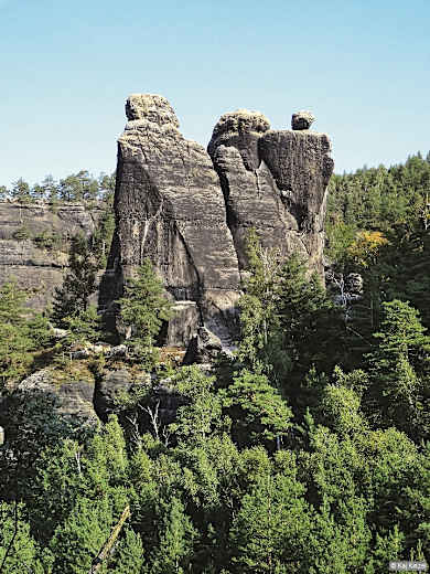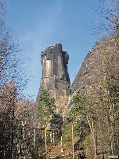 Der imposante Teufelsturm gehört zu den schwierigsten Kletterfelsen des ElbsandsteingebirgesFoto: Kaj Kinzel, Bergverlag Rother GmbH