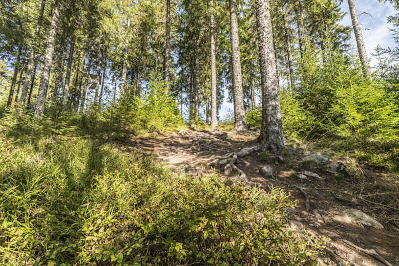 Hier tauchst du in den Bannwald ein und folgst dem schmalen Pfad, an einem Holzplatz vorbei, hinauf zur Stutzhütte. Von hier aus wanderst du zum Hanselefelsen und biegst anschließend nach links ab. Nach kurzer Zeit eröffnet sich ein toller Ausblick!