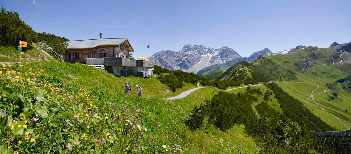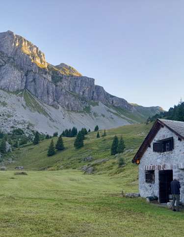 Wer möchte, kann es auch gemütlicher angehen und die erste Nacht auf der Pfälzerhütte verbringen. Die Hütte gehört dem Liechtensteiner Alpenverein und steht nur einen Steinwurf von der Österreichischen Grenze entfernt.