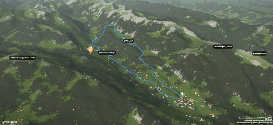 Ausgangspunkt der Wanderung ist der Ort Gunzesried. Von dort wandert man zur Winkelwiesenalpe, am Rauhenberg entlang zur Falkenalpe. Weiter zur Ornachalpe und durch den Schönbuchwald hinunter ins Autal.
