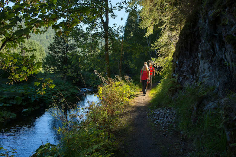 Diese liebliche und zugleich abwechslungsreiche Etappe des Albsteigs im Südschwarzwald in Baden-Württemberg verläuft zwischen der Domstadt St. Blasien und dem idyllisch gelegenen Bergdorf Menzenschwand-Vorderdorf. Die mittelschwere Wanderung führt zunächst entlang der Alb durch stille Waldabschnitte und über neu angelegte Erlebniswege wie den „Achter-Pfad“, vorbei an urigen Sägen, kleinen Seen und einem idyllischen Biotop. Schöne Aussichten und gut angelegte Rastplätze begleiten den Weg, bevor er mit weitem Blick ins Tal ins Herz von Menzenschwand hinabführt. Ausgangspunkt ist der Ortsrand von St. Blasien.