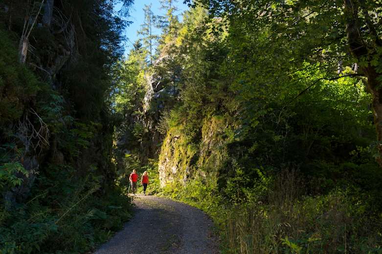 Danach zweigt der Weg wieder rechts auf einen schmalen Pfad ab, der direkt am Wasser entlang zur Glashofsäge, einem Ortsteil von St. Blasien, führt. An der Glashofsäge teilt sich der Albsteig. Die heutige Tour folgt dem Arm der Menzenschwander Alb.