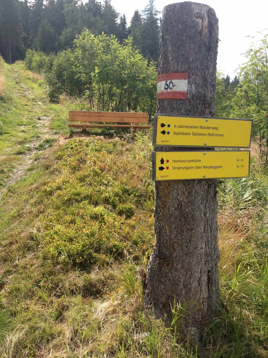 Beschilderung 4-Jahreszeiten Wanderweg mit Rastbank Foto: Gerhard Pilz, Schladming-Dachstein