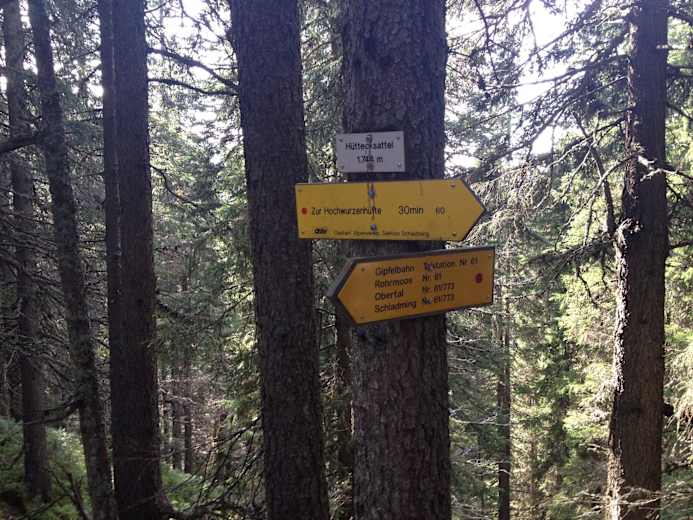 Von Schladming Richtung Rohrmoos, beim Kreisverkehr in Rohrmoos geradeaus Richtung Hochwurzenbahn, nach ca. 1,5 km befindet sich auf der linken Seite der Parkplatz der Gipfelbahn Hochwurzen. Mit der Seilbahn bis zur Bergstation.