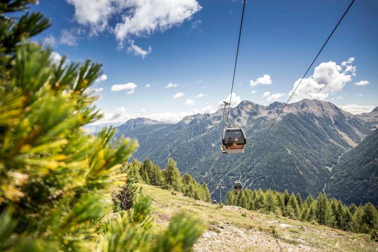 Bei Lana abzweigen ins Ultental und weiter bis zum Stausee Kuppelwies und zur Talstation der Schwemmalmbahn. Vom Stausee Kuppelwies geht es mit der Schwemmalmbahn.