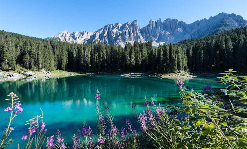 Der Perlenrundwanderweg ist eine fünftägige Wanderung in Südtirol für Naturliebhaber. Dabei werden die Ortschaften Deutschnofen, Welschnofen, Steinegg und Tiers zwischen den Dolomiten Bergen Rosengarten und Latemar verbunden. Auf der dritten Etappe ist Panorama pur angesagt. Die Strecke führt vom Karer See durch malerische Wälder und über alpine Wiesen bis nach Obereggen. Für diese mittelschwere Etappe sollte man gut 4 h Zeit einplanen. Dafür sind an diesen Tag nur 412 Hm aufwärts zu bewältigen.