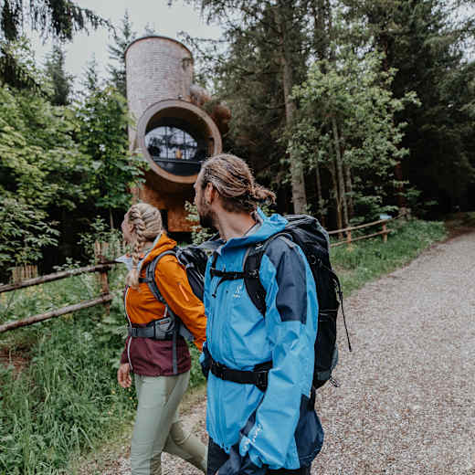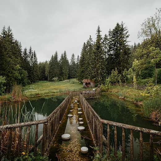 Der „Romantische Bründlweg“ ist einer der schönsten Themenwanderwege in der Steiermark und der höchstgelegene Barfußweg außerdem. 22 Brunnenanalgen laden zur Verkosten des frischen Quellwassers ein, man passiert den ersten Wanderer-Kreisverkehr und obendrein genießt man tolle Aussichten. Außerdem befindet sich am Weg seit 2022 die längste Holzbank - sie ist fast 100 Meter lang und kommt ganz ohne Nägel aus. Für die leichte Wanderroute von 11,3 km sollte man sich gut 3:30 h Zeit nehmen. Ausgangspunkt ist das Wirtshaus Steirereck Pogusch.