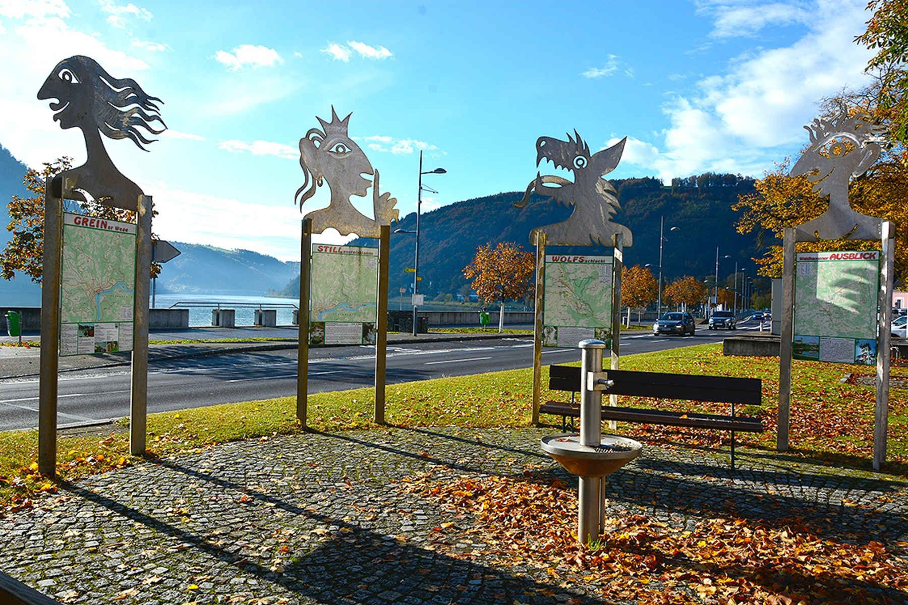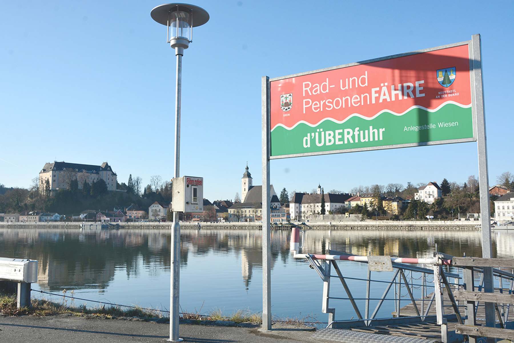 Außerhalb der Fährzeiten ist ebenfalls eine Begehung der Tour möglich, wenngleich sich die Strecke in Bezug auf Dauer (+1 Std.) und Länge (+5 km) verändert. Alternativroute: Nach dem Abstieg nach Wiesen folgt man der Straße bis zur Anlegestelle der Donaufähre. Bei der Anlegestelle links abbiegen und der Asphaltstraße bzw. dem Donauradweg zurück in Richtung Donaubrücke Grein folgen. Nach ca. 2 Kilometern die Donaubrücke überqueren und rechts in Richtung Grein abbiegen. Dem Donauradweg auf der anderen Seite der Donau zurück bis zum Greiner Hafen folgen. Anschließend über die Bogenbrücke und den Planetenweg zurück zum Ausgangspunkt oder weiter auf dem Greiner Stadtspaziergang.