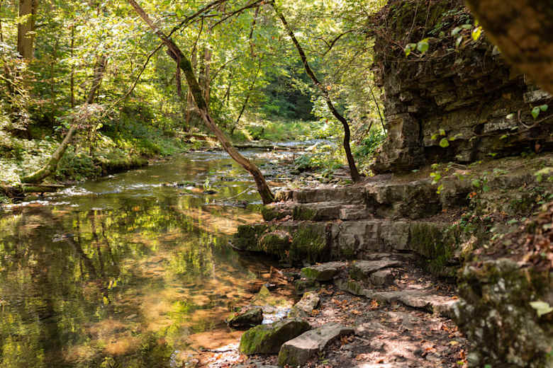 Entlang des linken Ufers geht es bis zur Mündung der Gauchach, der du in die gleichnamige Schlucht bis zur Burgmühle folgst. Anschließend führt die Route in die schmale, teils rutschige Engeschlucht, den anspruchsvollsten Abschnitt der Wanderung.