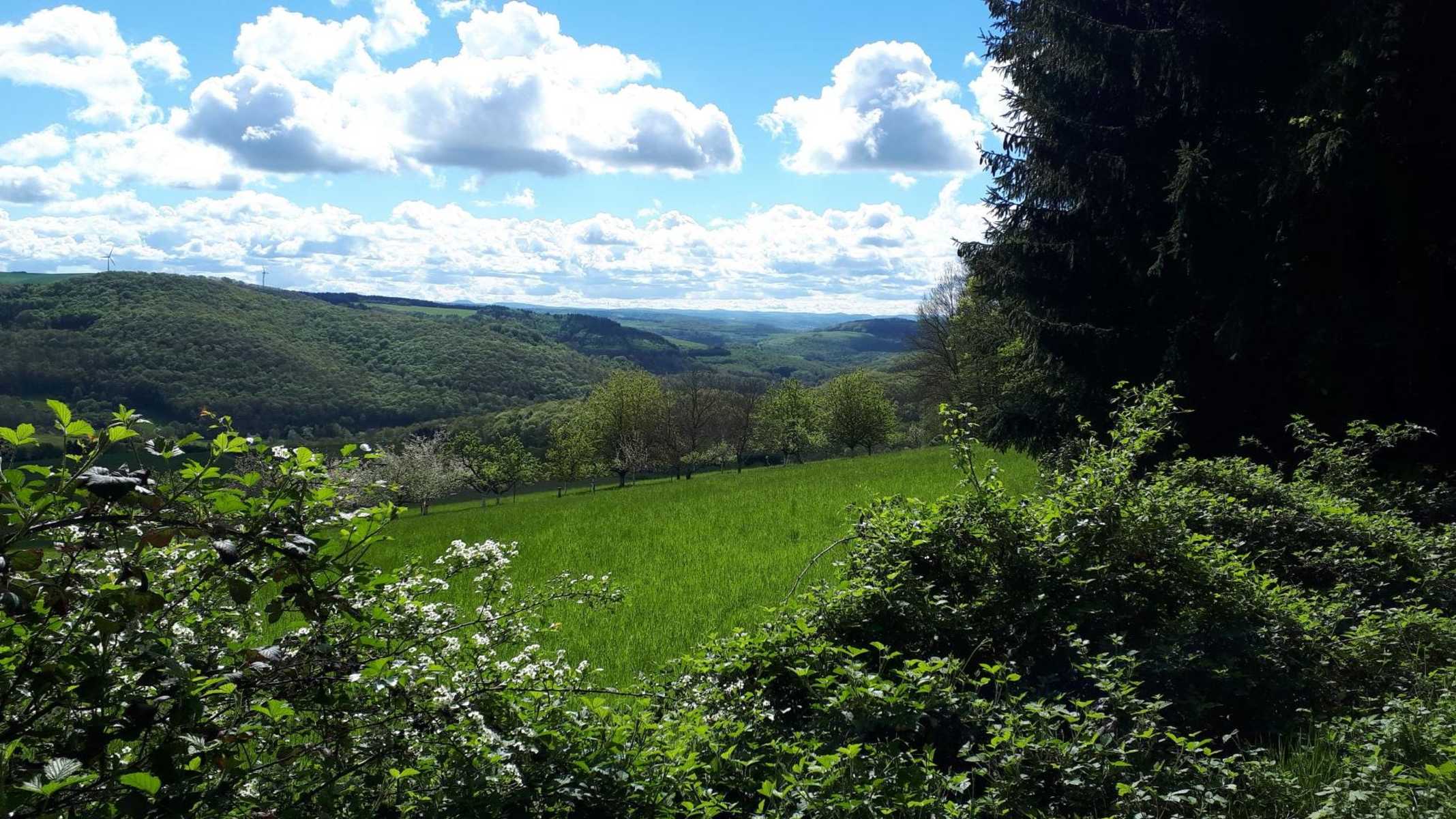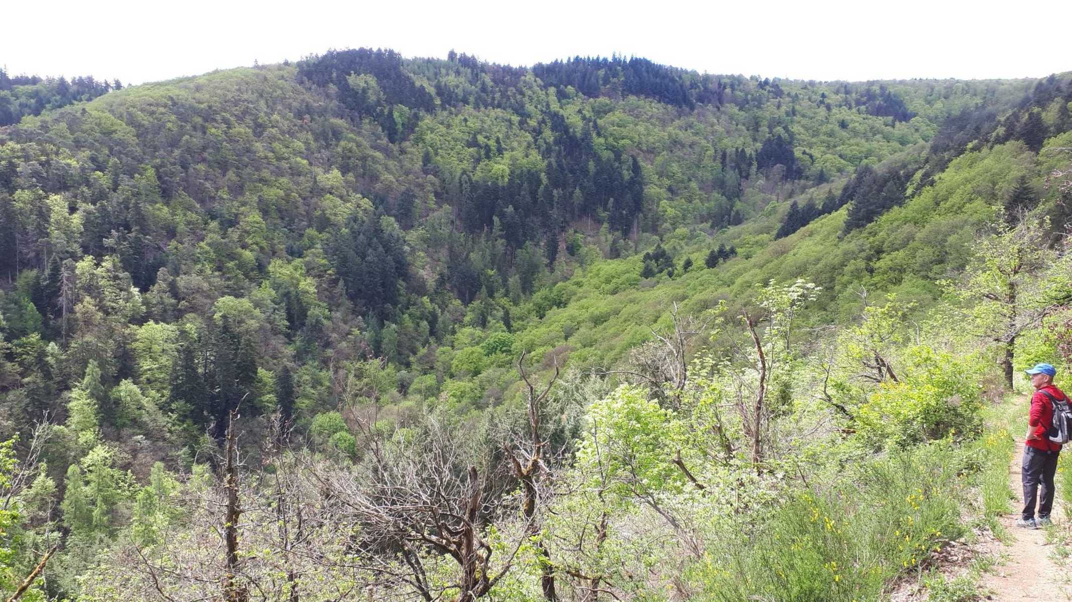 Im schattigen Wald beginnen wir anschließend den finalen Abstieg und wandern zwischen saftigen Wiesen und Feldern hinab nach Wolfstein im malerischen Lautertal. Vom südlichen Ortsrand kommen wir am Rathausplatz vorbei und erreichen am Bahnhof das Ende des Pfälzer Höhenwegs.