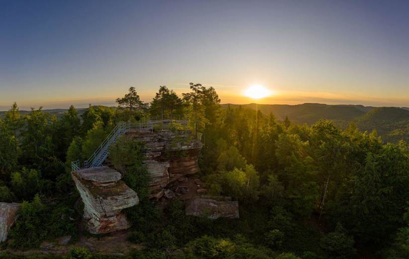 Die sechste Etappe des Pfälzer Waldpfads gilt als Königsetappe und ist eine anspruchsvolle Wanderung im Herzen des Pfälzerwaldes in Rheinland-Pfalz. Von Merzalben führt der Weg zur Ruine der Burg Gräfenstein mit ihrem markanten siebeneckigen Bergfried, weiter zum Aussichtsfelsen Winschertkopf und schließlich zum 607 m hohen Weißenberg, dem höchsten Punkt des Pfälzer Waldpfads, mit Panoramablick vom Luitpoldturm. Über den Hermersbergerhof und das Tal der Queich endet die Etappe im Schuhdorf Hauenstein, das zum Verweilen einlädt.