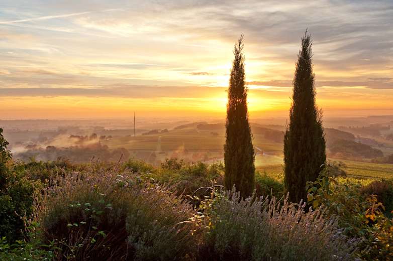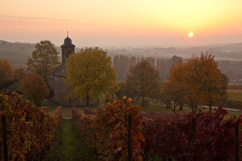 Wir lassen den Ort hinter uns und wandern durch aussichtsreiche Weinberge, vorbei an einer von Reben umgebenen Unterstandshütte, in die Kurstadt Bad Bergzabern weiter. Hier laden die verwinkelte Altstadt zum Bummeln und idyllische Parkanlagen sowie die Südpfalz-Therme zum Entspannen ein. Auch das prächtige Bad Bergzaberner Schloss sowie der herrliche Renaissancebau des Gasthauses „Zum Engel“ sind einen Besuch wert.