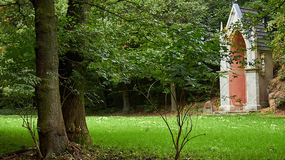 Von dort weist uns der Wegweiser zur Schönen Höhe mit Turm und Aussichtsplattform. Am Sonntag bietet häufig der Quandtverein Führungen im Belvedere an. Erlebnishungrige können zuvor einen etwa 500 Meter langen Abstecher zur Zwergenhöhle unternehmen.