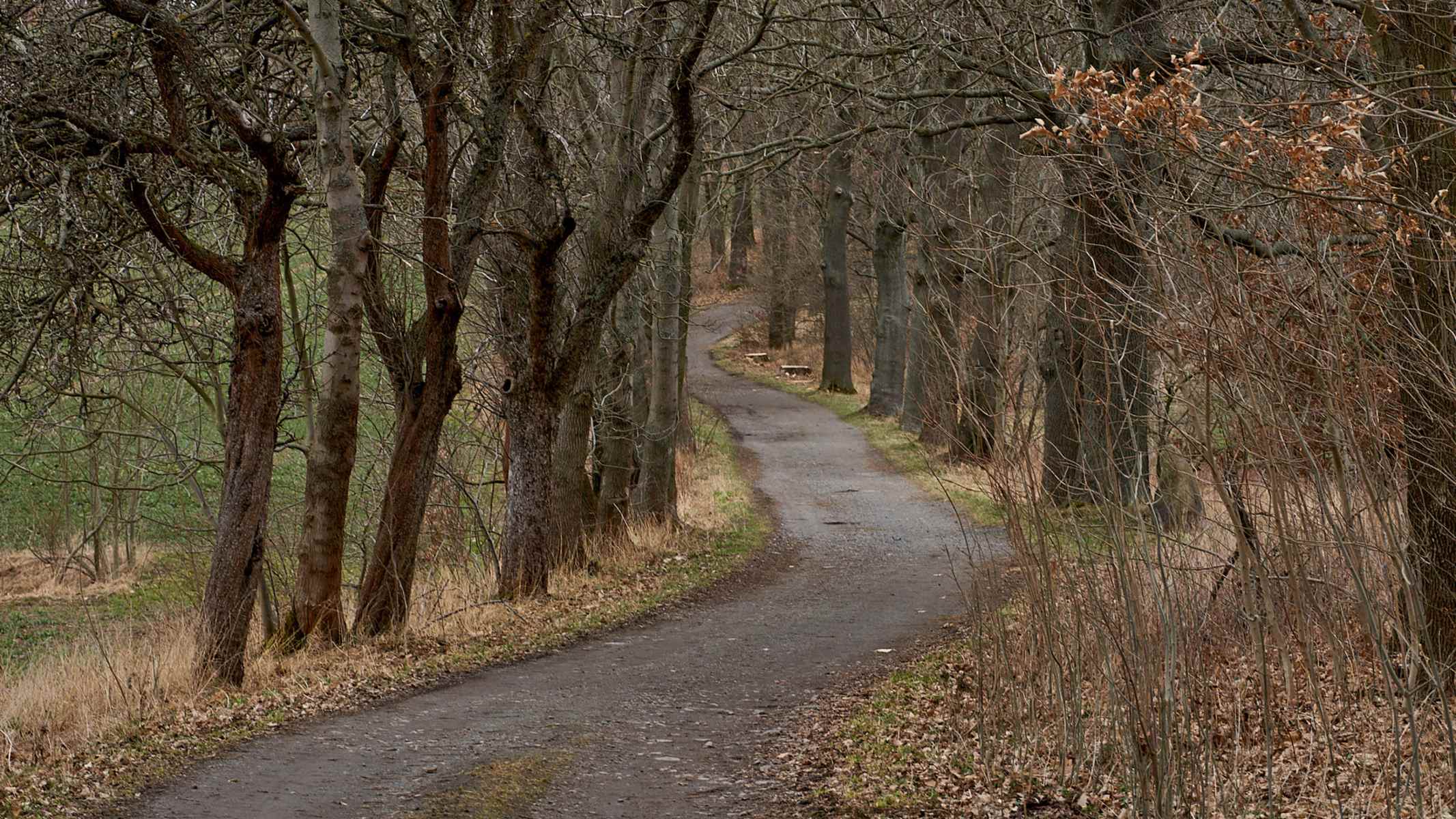 Über eine kleine gepflasterte Brücke nehmen wir den kleinen Pfad geradeaus, der in einen imposanten, waldumsäumten Hohlweg übergeht. Dies ist der alte Bischofsweg, die mittelalterliche Verbindungsstraße zwischen der bischöflichen Hauptresidenz Meißen und der Nebenresidenz in Stolpen, der durch den einst regen Wagenverkehr zu solch einem tief eingeschnittenen Hohlweg wurde.