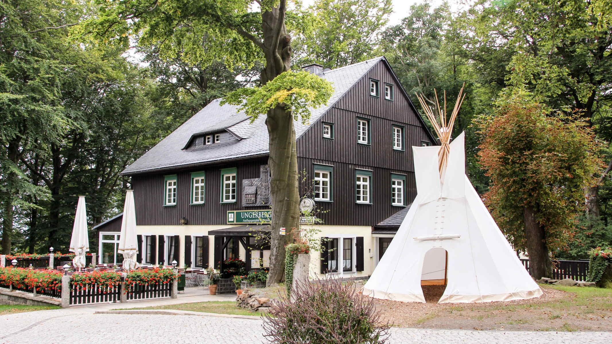 Bald gelangt man zu den Ungerstufen, die zum Gipfel des Ungerberges führen. Der Rundblick vom Prinz-Georg-Turm über Neustadt und die Sächsisch-Böhmische Schweiz ist ein Aufstieg wert. Die Ausflugsgaststätte empfiehlt sich mit leckerer heimatlicher Küche. Der ultimative Tipp von Einheimischen: hausgemachte Sülze oder das „Ungerschnitzel“ probieren!