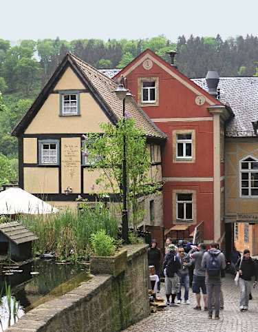 Weiter geht es an der Felskante bequem entlang. Nachdem die Straße gequert wurde, hält man sich rechts und folgt ab dem Parkplatz der Ausschilderung zum Labyrinth. Wer mag, kann sich hier durch enge Spalten, Höhlen und Löcher zwängen – was vor allem Kinder mit Freude meistern. Die weitere Tour führt durch die Felskulisse verschiedener bekannter Filmproduktionen (z. B. Hänsel & Gretel: Witch Hunters, Cloud Atlas, Das kalte Herz u. a.).