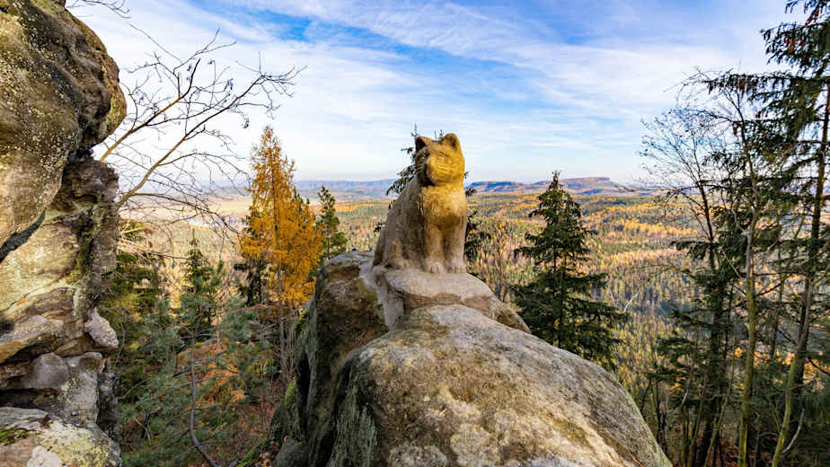 Die Rundwanderung auf den Katzstein (475 m) und den Spitzen Stein führt durch die abwechslungsreiche Felsenwelt der Sächsischen Schweiz in Sachsen. Die mittelschwere Wanderung bietet luftige Leitern, schmale Pfade und zahlreiche Aussichtspunkte wie den Signal, den Katzfels und den Rotstein. Ausgangspunkt ist die Haltestelle Deutsches Haus in Cunnersdorf, einem Ortsteil von Gohrisch.