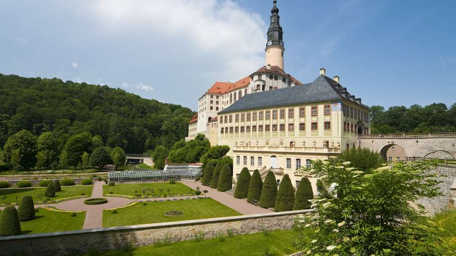 Die Wanderung vom Schloss Weesenstein zum Barockgarten Großsedlitz ist eine mittelschwere Tour im Elbsandsteingebirge bzw. Erzgebirgsvorland, die Kultur und Natur verbindet. Sie führt über die Reste des ehemaligen Belvederes und bietet vom Waldrand bei Meusegast weite Ausblicke bis in die Sächsische Schweiz. Am Ziel lädt der prachtvolle Barockgarten Großsedlitz zu einem Spaziergang ein. Ausgangspunkt ist das Schloss Weesenstein, das vom Bahnhof Weesenstein in wenigen Minuten erreichbar ist.