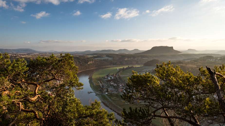 Verpassen Sie nicht den Abstecher am Tiedgestein – eine erste spektakuläre Aussicht ins Elbtal. Wieder zurück auf dem Weg steigen Sie weitere Stufen hinauf. Hier gibt es einen weiteren lohnenswerten Abstecher zur Kanapee-Aussicht.