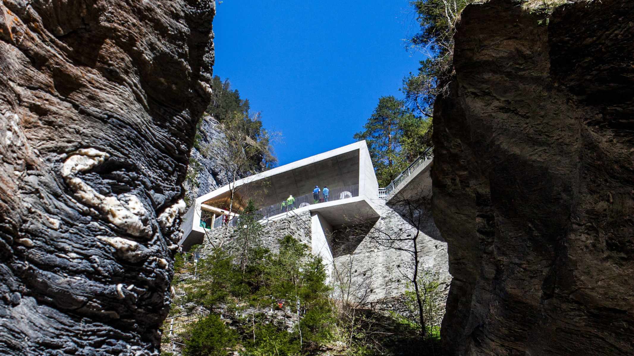 Im Herzen der Viamala-Schlucht befindet sich das Besucherzentrum, wo eine Treppenanlage aus dem Jahre 1903 in die Tiefen der Schlucht hinunterführt. Das Farbenspiel des Wassers, die ausgewaschenen Strudeltöpfe und die imposanten Felsformationen können in den Tiefen der Schlucht erlebt werden. Die Terrasse des Besucherzentrums lädt zum Verweilen ein.