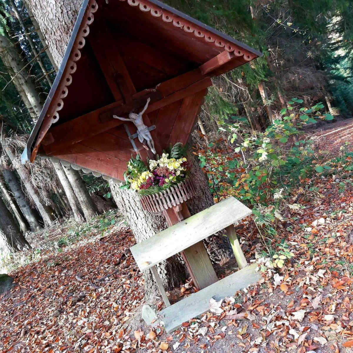 Vom GH Jägerwirt gehen wir in westlicher Richtung 800 m auf der Gemeindestraße bis zur Straßenkreuzung. Nach 20 m zweigt man rechts in den Wald ab, entlang eines Karrenweges geht es 300 m bis zur nächsten Abzweigung. Von hier führt der Weg-Nr. 15 links weiter zum Kirchlein Ulrichsbrunn und weiter nach Anger.