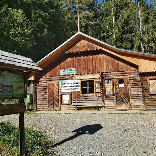 Der weitere Weg führt nun in Richtung "Lärchsattel" bzw. "Gösser" und vorbei am Sattelwegkreuz mit Inschrift und Bankerl. Bei der Schautafel beim Dürntalerkreuz bzw. der Stadlzenzenhalt gehen wir links abfallend am "Naaser Höhlenweg" in Richtung "Grasslhöhle/Dürntal" weiter. Wir gehen bis zum Gösserweg, überqueren die Straße gehen jetzt am "Lebauer-Steig" hinunter in der Raabklamm. Vom Gösserweg ist ein kurzer Abstecher zum "Dürntalwirt" (Fam. Graf/Reisinger) möglich.