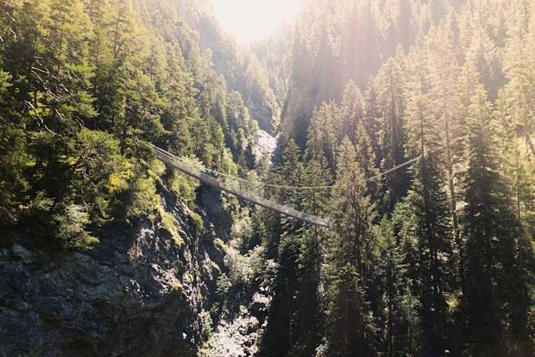 Mit der Rhätischen Bahn (RhB) nach Thusis. Von dort bringt dich das PostAuto in wenigen Minuten direkt zum Besucherzentrum der Viamala-Schlucht. Alternativ kannst du auch schon in Thusis starten und zu Fuß über den Traversinersteg oder das Verlorene Loch in die Schlucht wandern.