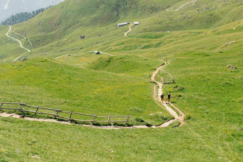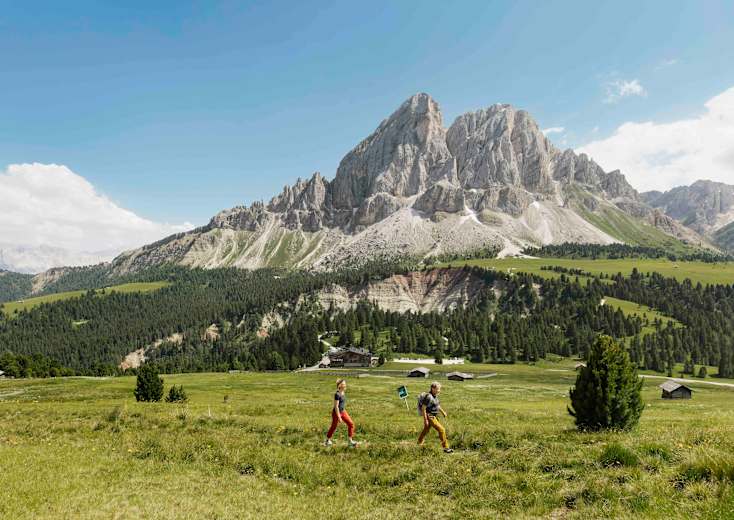 Der Weg verläuft leicht ansteigend durch einen schönen Zirbenwald zu den sanften Almwiesen und zur Ütia Munt de Fornella (2.080 m, Einkehr). Hier schließt sich der Kreis und auf bekanntem Weg wandert man zurück zum Ausgangspunkt, dem Würzjoch.