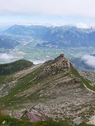 Vom Gamidauerspitz wandern wir Richtung Tal weiter. Nach einem Abstieg wandern wir via Bastanggla auf den letzten Gipfel, den Garmil. Beim Wegweiser Basürla folgen wir dabei dem Weg Richtung «Fürggli via Garmil». Auf dem Garmil angekommen, gehen wir aber nicht weiter Richtung Fürggli, sondern nehmen wieder denselben Weg zurück bis zur Abzweigung Basürla. Da folgen wir dem Wegweiser Richtung Gaffia Station, welche wir nach einer knappen Stunde erreichen.