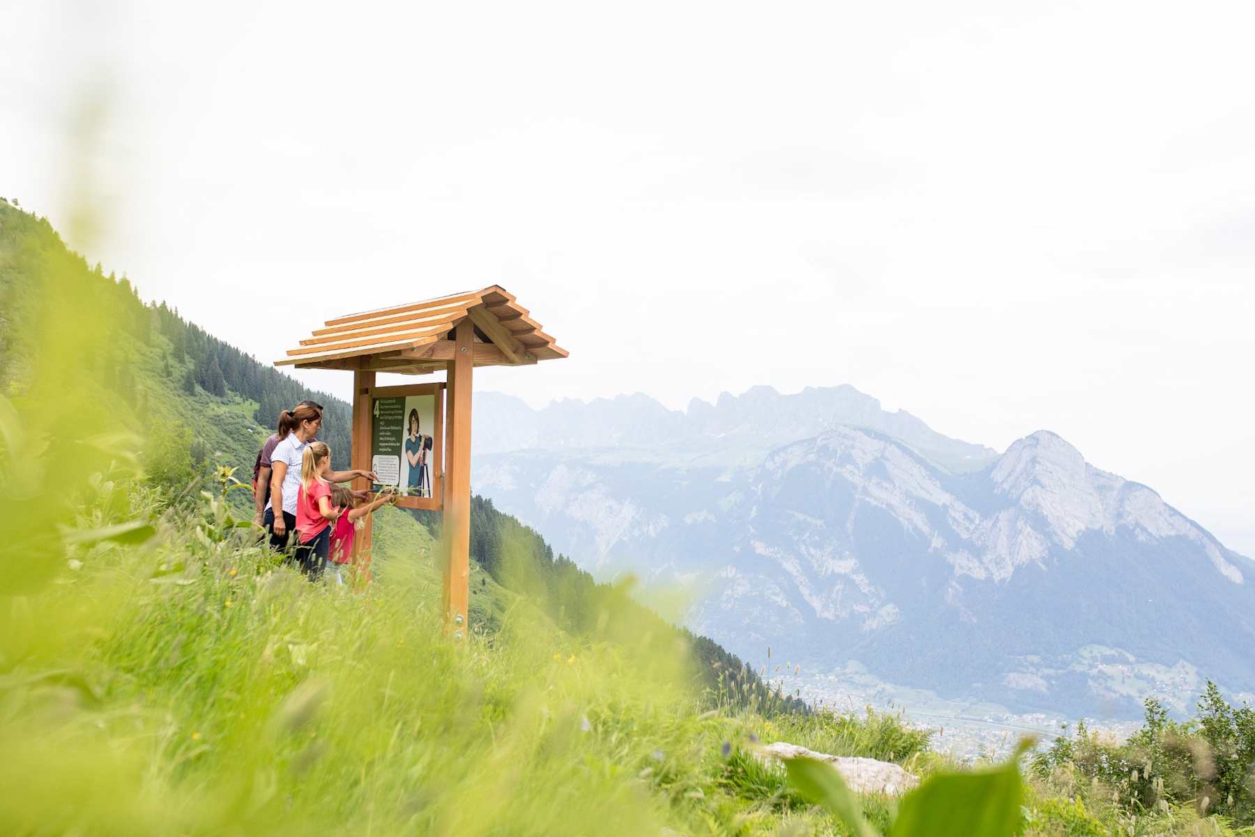 Von der Talstation Wangs fahren wir mit der Gondelbahn der Pizolbahnen an die Bergstation Furt, wo der MounTeens Detektiv-Weg startet und endet. Von da folgen wir den Wegweisern.