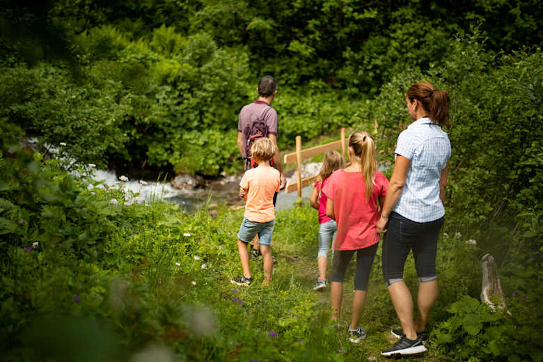 Ein Highlight für Familien ist der Wasserwald bei der Furt, wo Kinder spielerisch am Bach tüfteln und stauen können – die perfekte Ergänzung zum spannenden MounTeens-Detektivabenteuer.