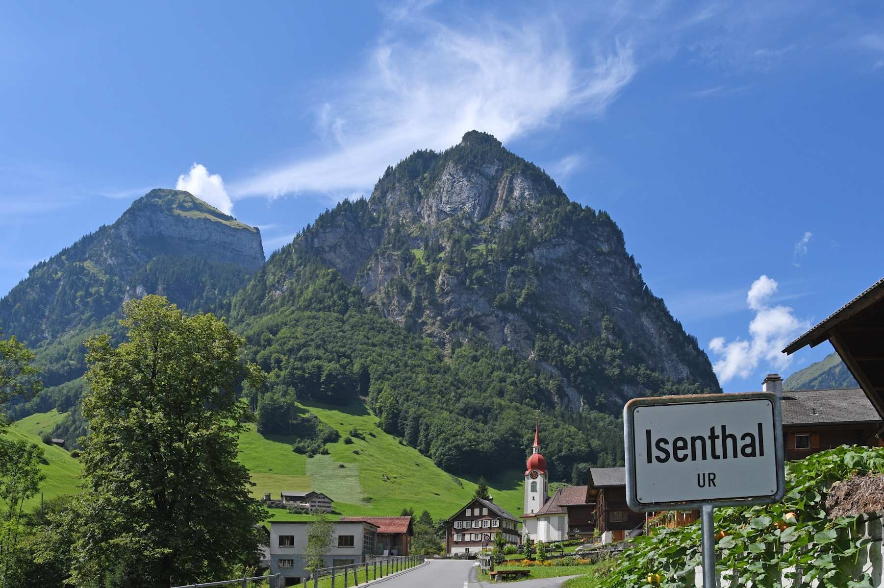 Bei der sehenswerten Dorfkirche steht das Denkmal von Pater Alberik Zwyssig. Ein letzter Anstieg führt über den alten Landweg und den herrlichen Aussichtspunkt Bärchi bis zum Dorf Isenthal – dem Ende der Via Urschweiz.