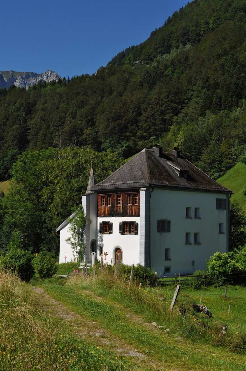 Durch den romantischen Tannwald und vorbei am Bergseeli lädt das Schloss Beroldingen an idealer Lage zu einem kurzen Rast und Besuch der Kapelle mit dem Rokoko-Altar ein.