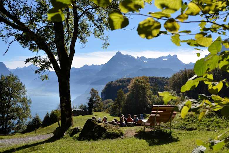 Die 5. und letzte Etappe der Via Urschweiz führt von Seelisberg (801 m) hinunter nach Bauen am Urnersee und über den alten Landweg zurück ins Bergdorf Isenthal (771 m) im Kanton Uri. Ausgangspunkt ist Seelisberg mit eindrucksvollen Ausblicken vom Schillerbalkon und der Marienhöhe auf das Rütli und die Mythen. Über den Tannwald, das Bergseeli und das Schloss Beroldingen geht es auf 960 historischen Stufen steil hinab nach Bauen, wo Palmen und sogar Bananen gedeihen. Nach einem letzten Aufstieg über den Aussichtspunkt Bärchi endet die mittelschwere Tour im ursprünglichen Isenthal.