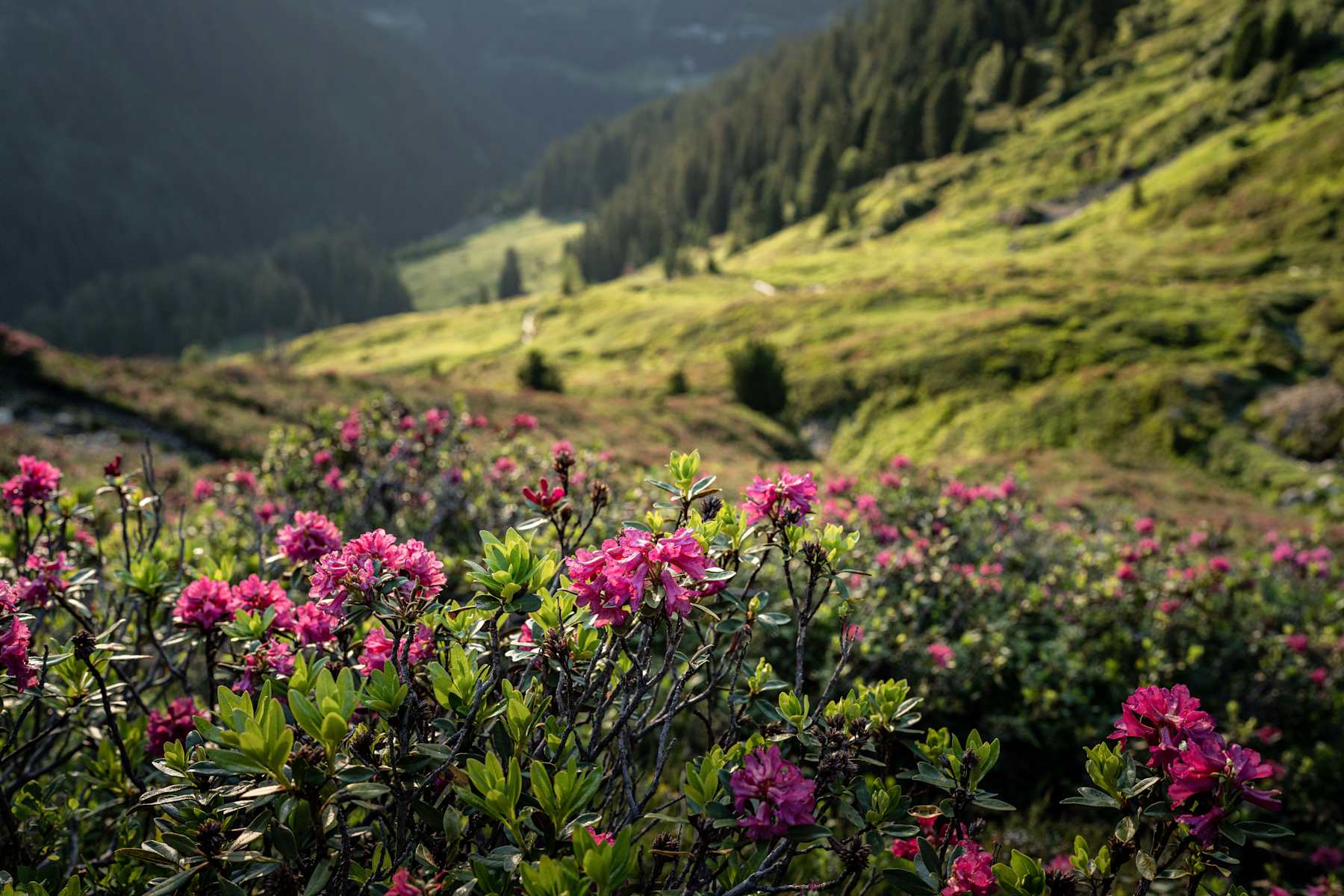 Der Alpenrosenweg zur Rendlalm (1.800 m) bei St. Anton am Arlberg in Tirol ist eine leichte und aussichtsreiche Panoramawanderung. Ausgangspunkt ist die Bergstation der Rendlbahn, von wo der markierte Höhenweg ohne große Steigungen durch die Verwallgruppe führt. Mit Blick auf die umliegenden Gletscher und vorbei an Almwiesen und Lawinenverbauungen erreicht man nach rund einer Stunde die bewirtschaftete Rendlalm, die zu einer Einkehr einlädt.