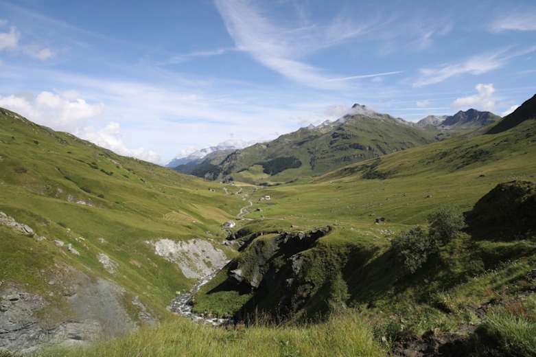 Blick über das Val Tgavregta mit den Alpen, die von den Bergellern bestellt wurden Foto: Matthias Schmidt, Graubünden Ferien