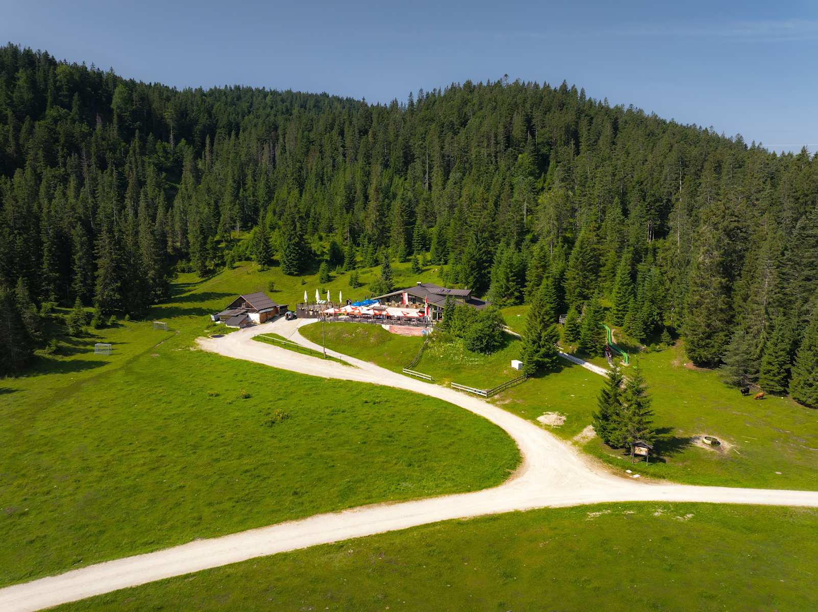 Parkplatz P1 bei der Seewaldalm - Mösern. Die Tour verlängert sich bei P1 um ca. 30 Minuten.