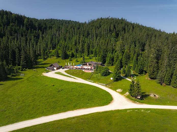 Beim Abstieg folgt man der Beschilderung zur Wildmoosalm. Die Alm samt Sonnenterrasse lädt zu einer gemütlichen Einkehr ein. Beschwingt wandert man dann weiter (Weg Nr. 2) zum aperiodischen Wildmoossee – da er nicht immer vorhanden ist, braucht man etwas Glück, um ihn mit Wasser gefüllt zu sehen. Wieder dem Rundwanderweg folgend (links halten) begegnet man mit etwas Glück auch dem Lottensee – einem ebenfalls aperiodischen Naturjuwel, das genauso gerne Verstecken spielt. Wenn aber auch hier kein See zu finden ist, verwöhnt die gemütliche Lottenseehütte mit allerlei hausgemachten Köstlichkeiten und motiviert mit frischem Kaffee und Kuchen für den Weiterweg.