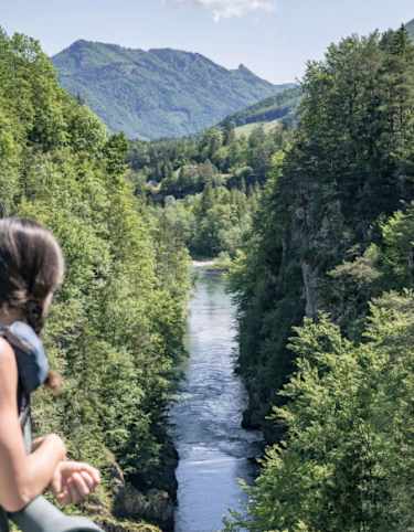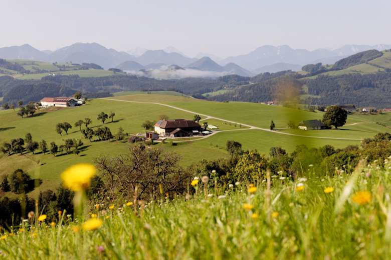 Sie überqueren die Ertlerstraße und nehmen – über saftige Wiesen – Kurs auf die „Schwarze Kuchl“, eine der ältesten Hofformen des Landes. Bald lockt rechts der Url-Ursprung mit erfrischendem Quellwasser.