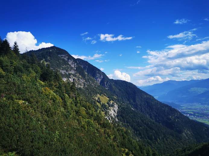 Ein großartiger Ausblick auf das Karwendel mit dem Bettelwurf, dessen Sage über den Bettelwurfgeist kann man hier nachlesen.