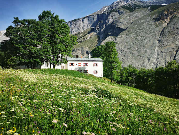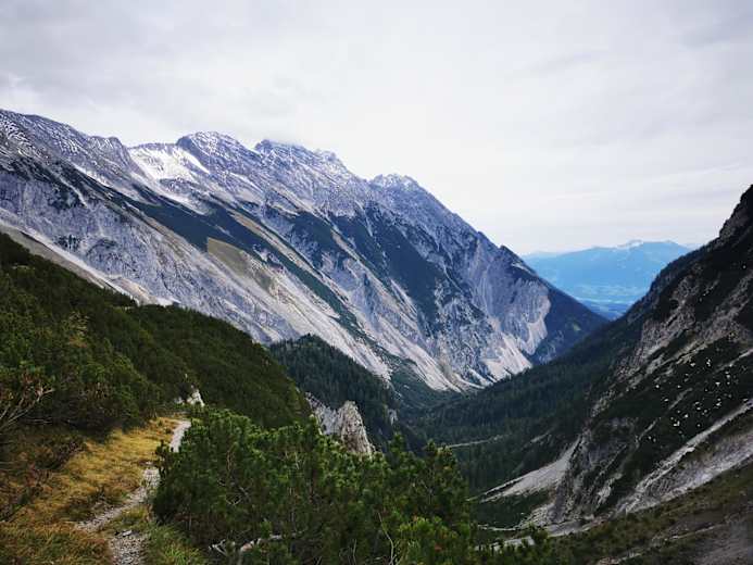 Ab hier folgen wir dem Steig rechts hinunter über mehrere Serpentinen ins Halltal und gelangen dort auf einen Fahrweg. Nun entweder entlang des Fahrweges oder einen Steig nehmend bis zu den Herrenhäusern – Zeugnis der Tiroler Salz- und Bergbaugeschichte.