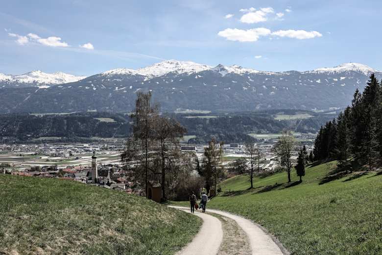 Gnadenwald liegt oberhalb von Fritzens und Hall. Vom Etappenziel (Ortsteil St. Martin oder Mairbach) gibt es Busverbindungen hinunter ins Inntal.
