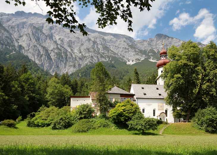 Gnadenwald liegt oberhalb von Hall in Tirol am Fuße des Karwendels.