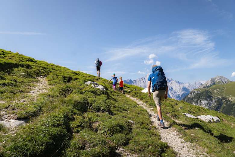 Familienwanderung im Gaistal: Familie läuft auf schmalem SteigFoto: Region Seefeld