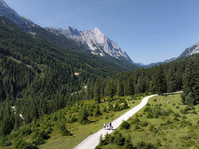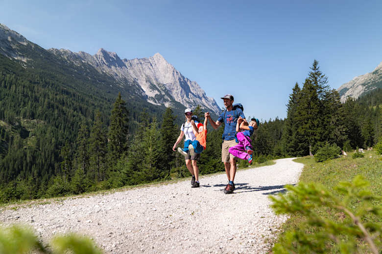 Familienwanderung im Gaistal: Familie läuft auf breitem WanderwegFoto: Region Seefeld
