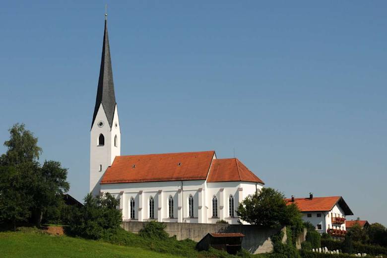 Von den Chiemgau Thermen in Bad Endorf führt der Weg teilweise auf asphaltierten Straßen bzw. Radwegen vorbei an der Kuratiekirche „St. Rupert & St. Laurentius“ bis nach Hemhof.
