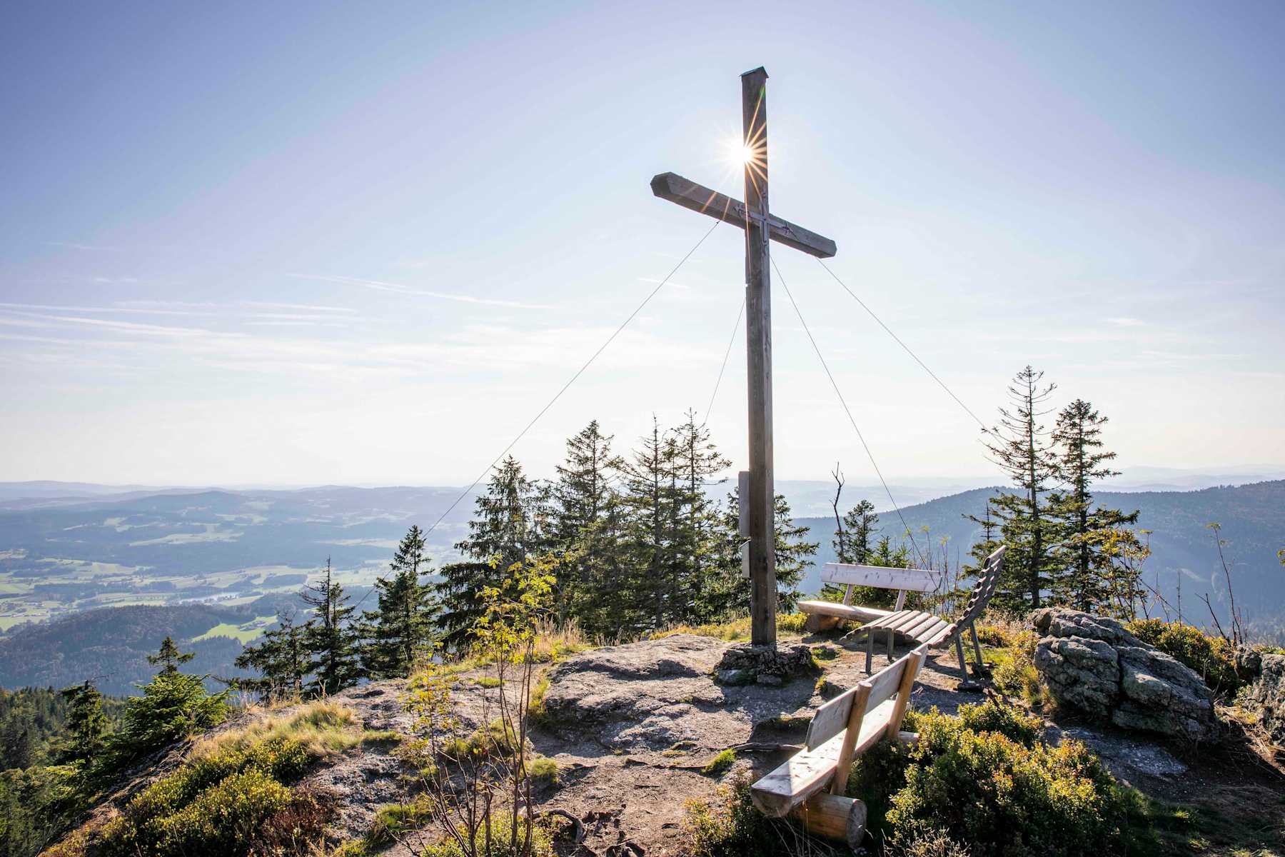 Am 3-Gipfelweg im Mühlvierltel Foto: TVB Mühlviertel, Andreas Mühlleitner Interessante Felsformationen am Herzogreitherfelsen Foto: TVB Mühlviertel, 3-Gipfelteam Abendstimmung am Herzogreitherfelse Foto: TVB Mühlviertel, Andreas Walch Photography Gipfelkreuz Haiderberg Foto: TVB Mühlviertel, Andreas Walch Photography Bildergalerie (4)