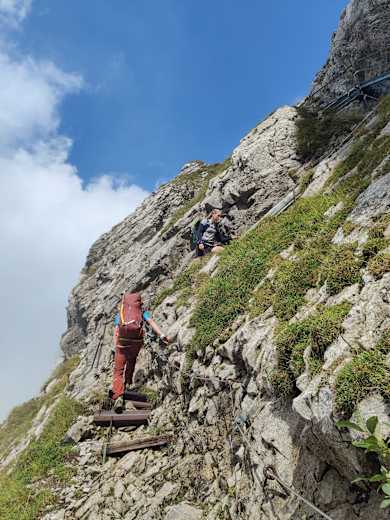 Der Zustiegsweg von der Ebenalp zum Altenalpsattel ist teilweise versichert und ausgesetzt, sollte aber für Aspirant*innen der Überschreitung keine Probleme bereiten. Foto: Leonie Lindlar Bildergalerie (5)